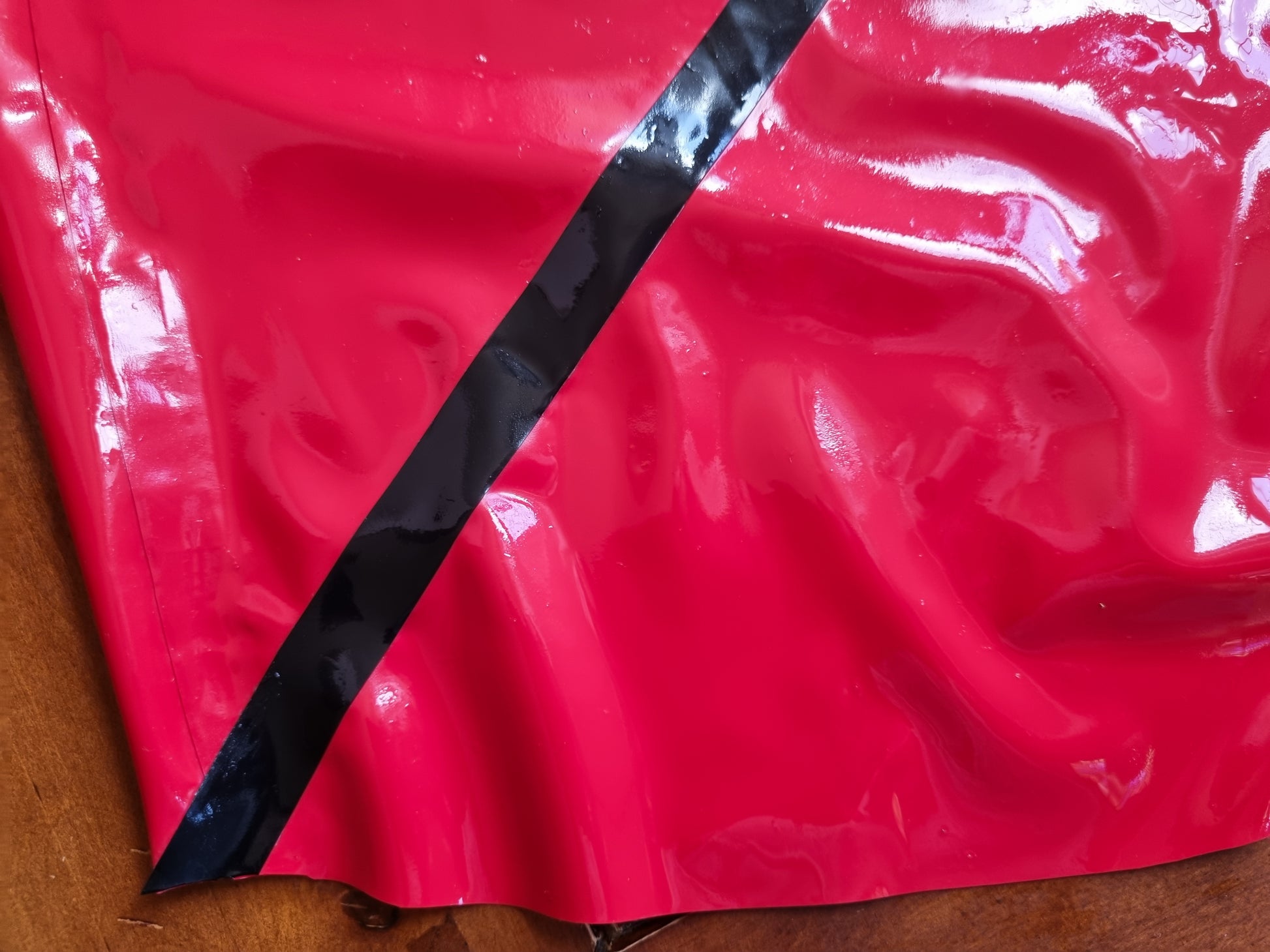 Firetruck Red Latex Vest w Black Diagonal Stripe Front & Back