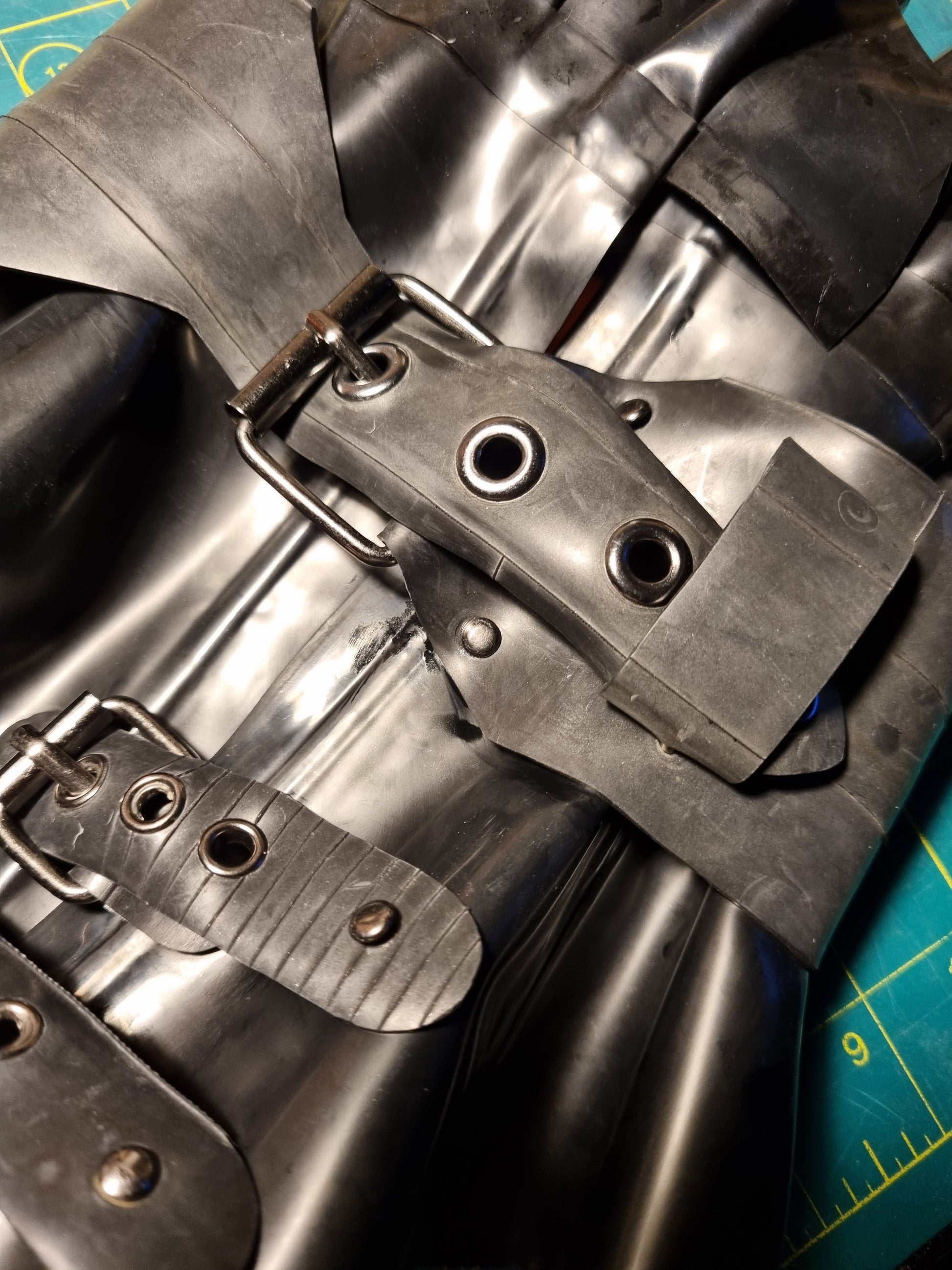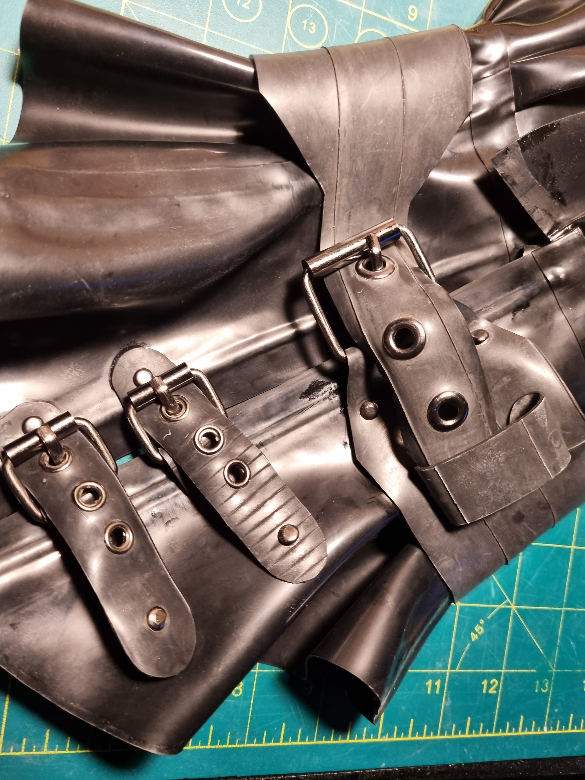 Incredible Jet Black Latex & Recycle Rubber Buckled, Boned, Studded & Ruffled High Neck Collar.
